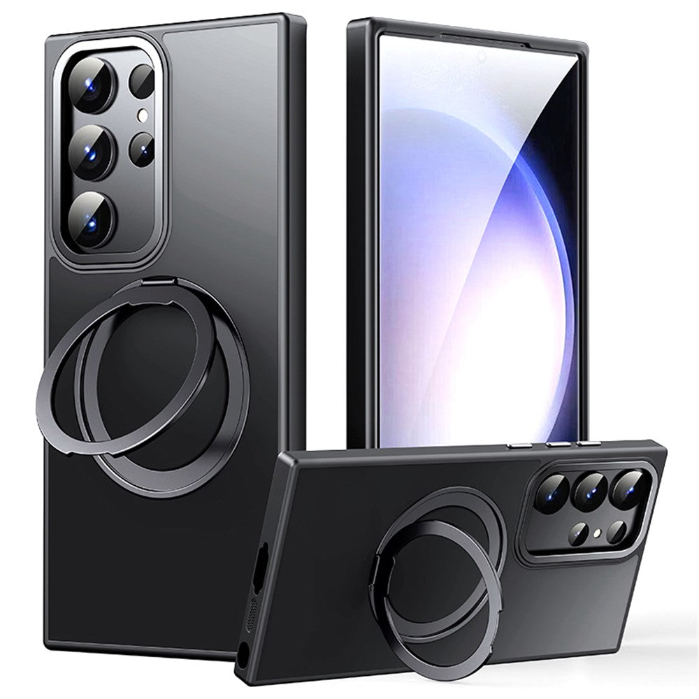 For Samsung Galaxy S23 Ultra TPU+Acrylic Matte Phone Case Rotatable Kickstand Cover Magnetic Case