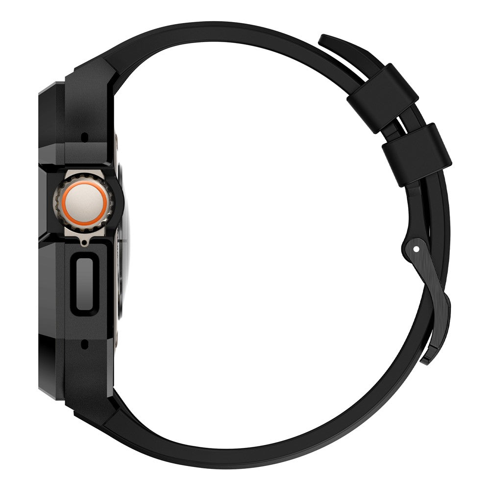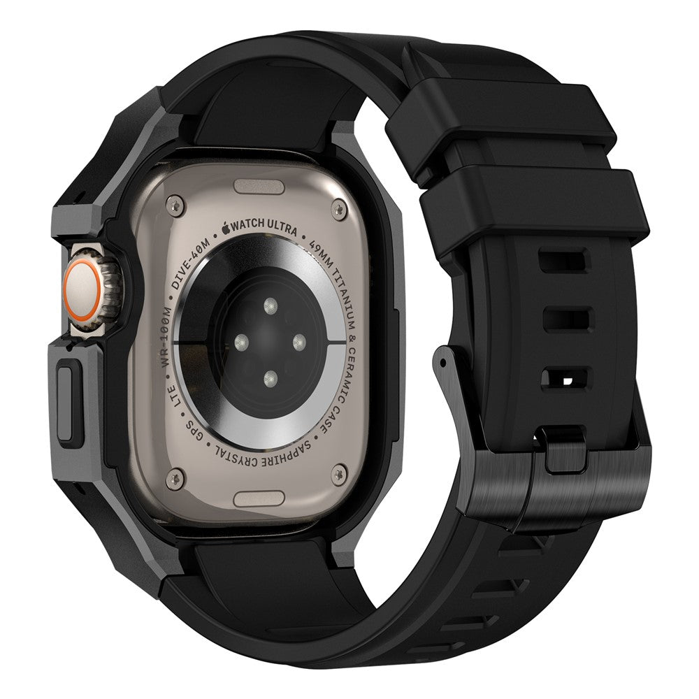 For Apple Watch Ultra 2 Ultra 49mm Soft Fluororubber Strap with Stainless Steel Wristwatch Case