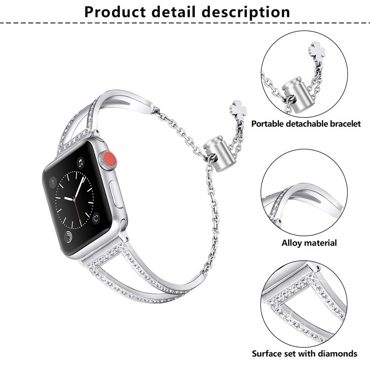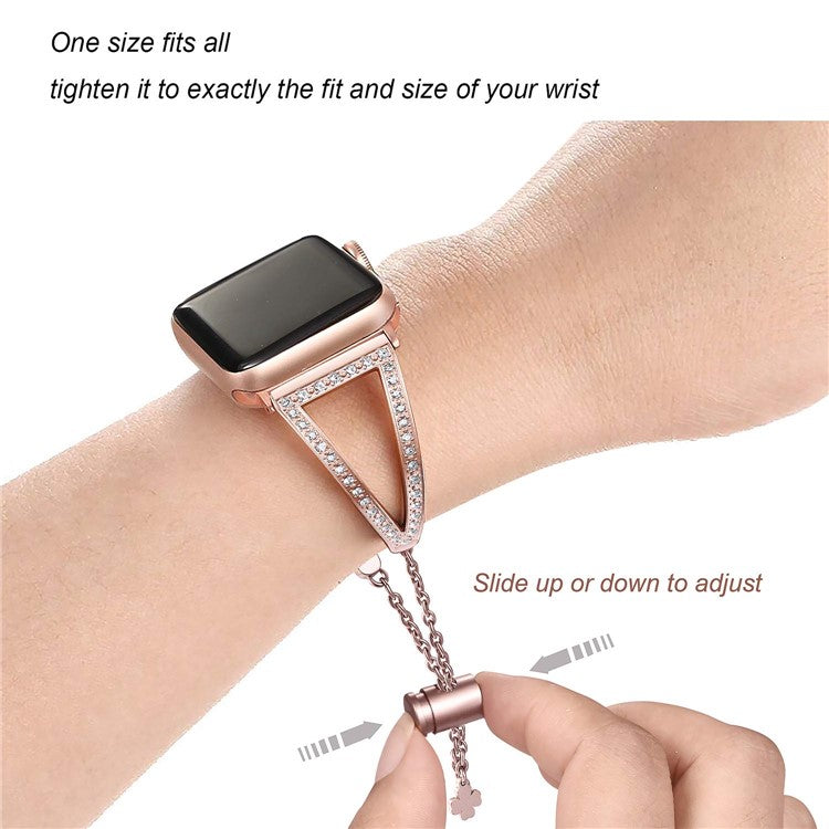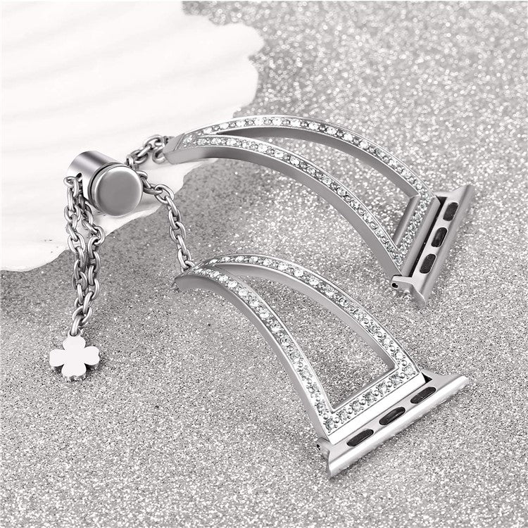 KALEBOL V Shape Watch Band for Apple Watch Series 10 9 8 7 SE 6 5 4 3 2 1 42mm 41mm 40mm 38mm Rhinestone Zinc Alloy Strap