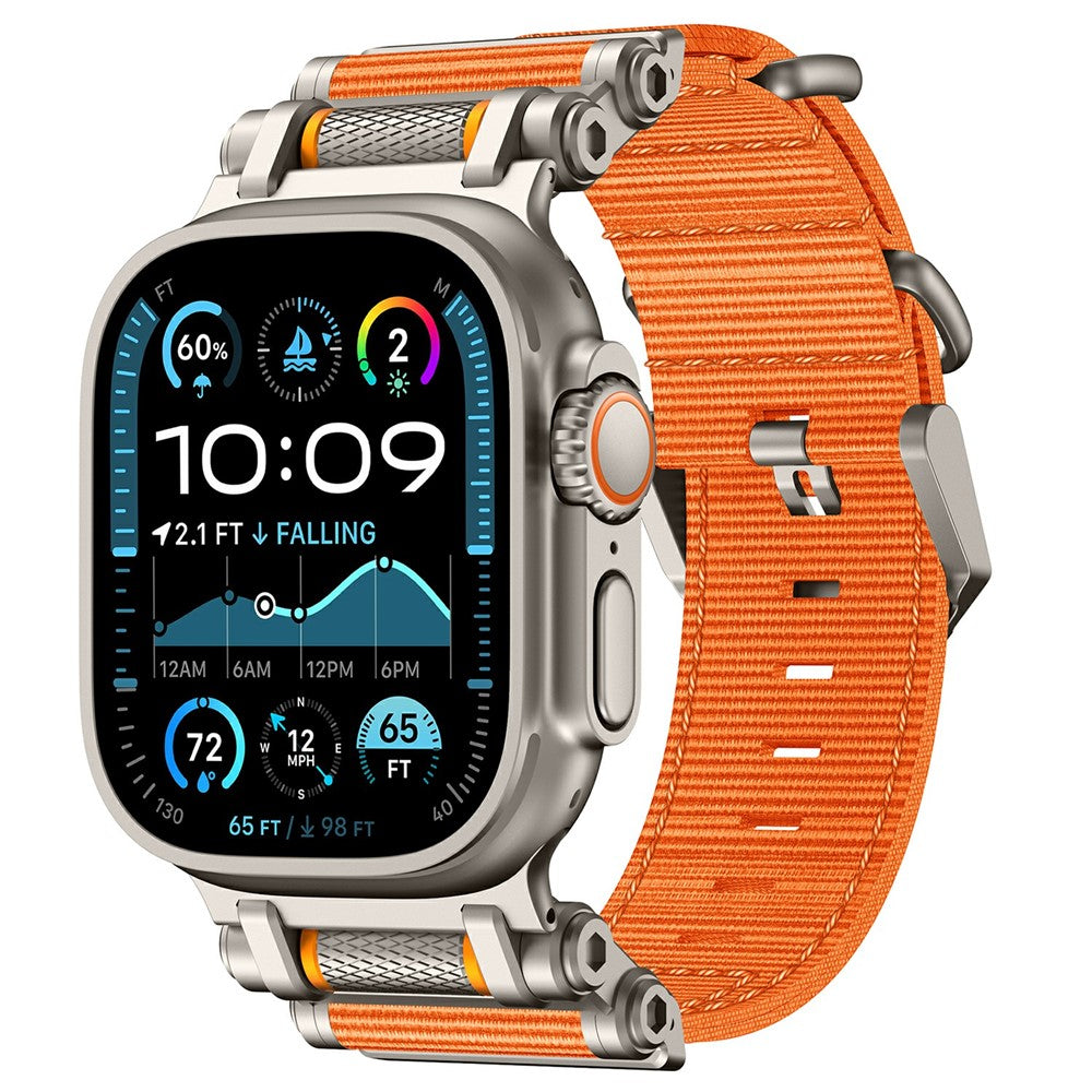 Watch Band For Apple Watch Ultra 3 2 1 49mm / Series 11 10 46mm / 9 8 7 45mm / SE3 SE2 SE 6 5 4 44mm / 3 2 1 42mm Gear Design Nylon Strap with Titanium Connector